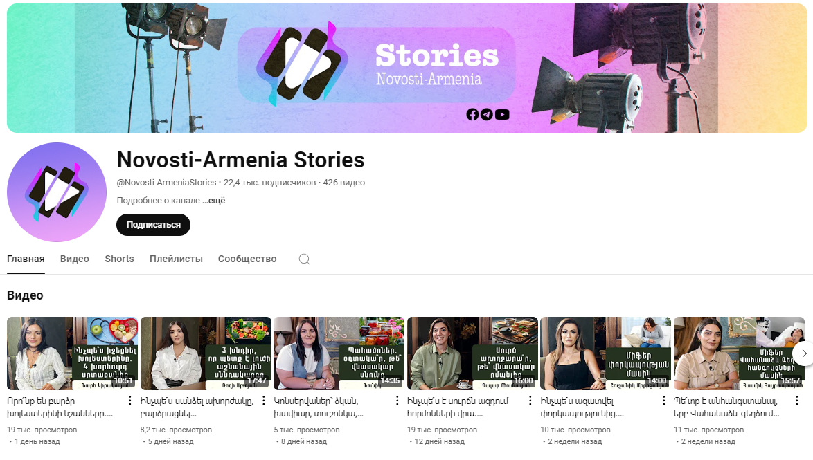 Այս պահին մենք YouTube-յան երկու ալիք ունենք՝ հասարակական-քաղաքական և ժամանցային: Առողջության մասին ակտուալ լուրեր, հարցազրույցներ և հաղորդումներ